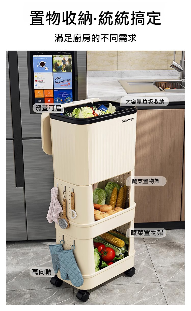 15分鐘前【不彎腰】家用可移動多功能置物垃圾桶 - 【超殺*贈20垃圾袋】1入組$279